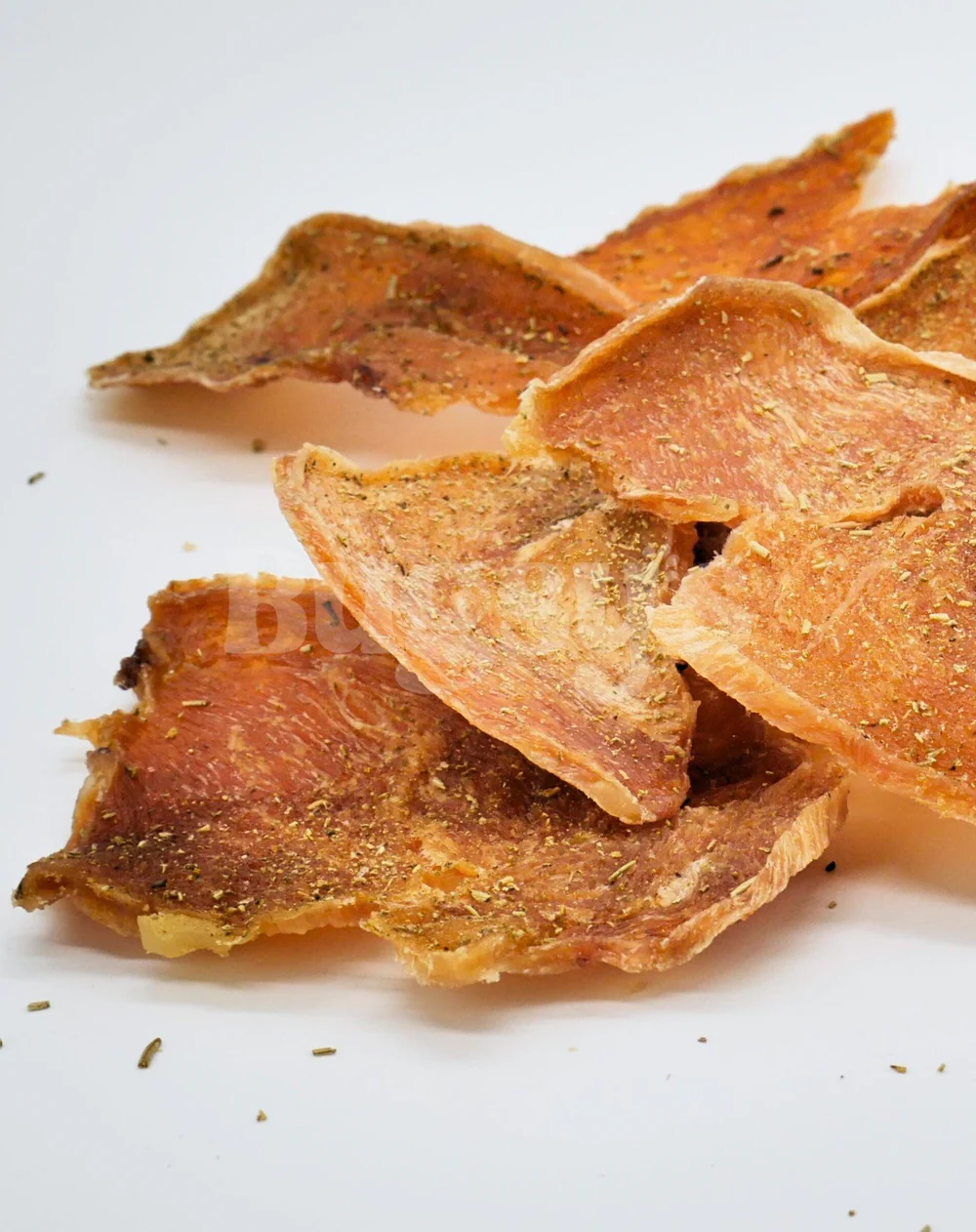 Bugsy’s Sunday Roast Treats bring the taste of a classic roast chook to your pup’s snack time. Made in Australia with free-range chicken and a hint of rosemary, these strips are both tasty and nourishing.