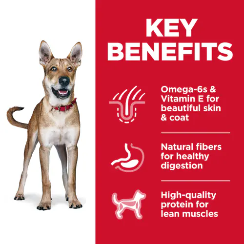 This formula provides balanced nutrition for adult dogs, supporting muscle maintenance, digestion, skin & coat health, and overall well-being.