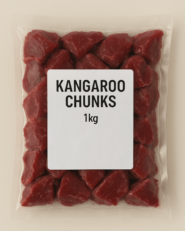🦘 100% Kangaroo Chunks: Premium cuts of kangaroo meat, diced into convenient chunks for easy portioning