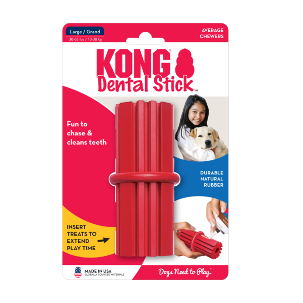 The KONG Dental Stick features unique Denta-Ridges that help clean your dog’s teeth and gums as they chew, supporting better oral hygiene and fresher breath naturally.