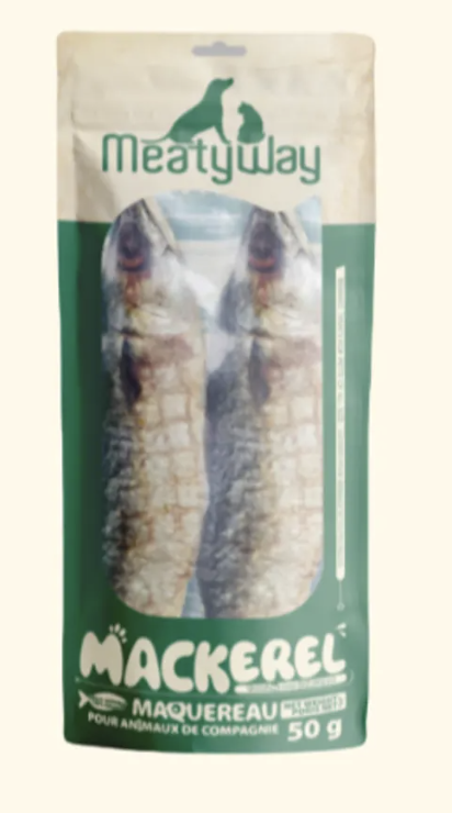 MeatyWay Mackerel Dog Treats are made from 100% real mackerel, carefully dried to preserve natural taste and nutrients. Rich in Omega-3 fatty acids, these treats support your dog’s skin, coat, joints, and brain function. Perfect as a training reward or daily healthy snack.