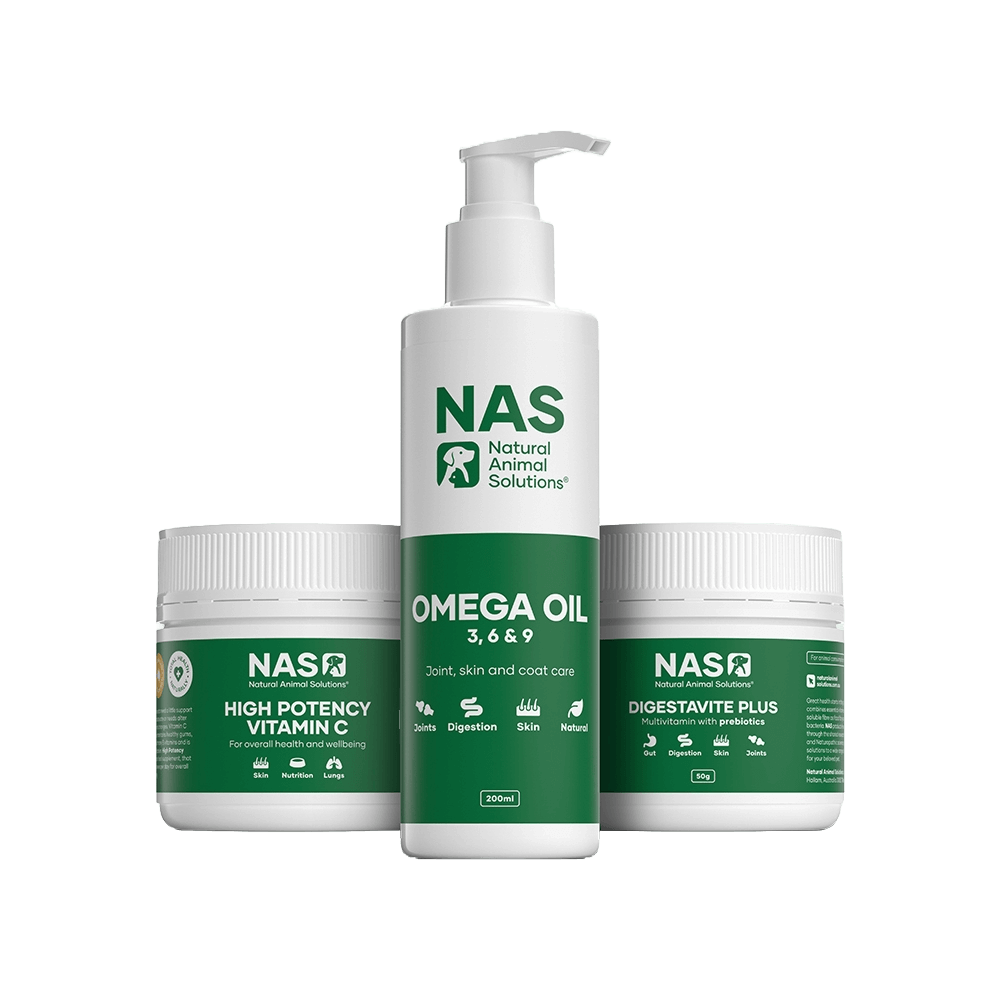 The Natural Animal Solutions Skin Pack is a comprehensive solution designed to address various pet skin issues by targeting underlying causes for lasting relief and improved coat health. This pack includes three key products.