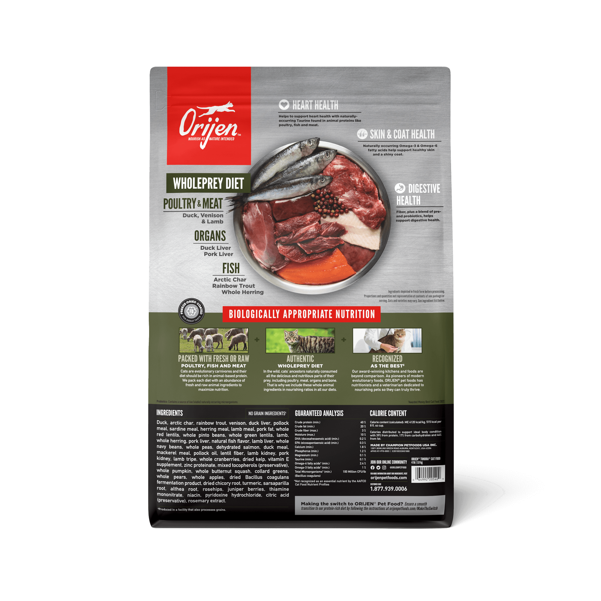 Duck, arctic char, rainbow trout, venison, duck liver, pollock meal, sardine meal, herring meal, lamb meal, pork fat, whole red lentils, whole pinto beans, whole green lentils, lamb, whole herring, pork liver, natural fish flavor, lamb liver, whole navy beans, whole peas, dehydrated salmon, duck meal, mackerel meal, pollock oil, lentil fiber, lamb kidney, pork kidney, lamb tripe, whole cranberries, dried kelp, vitamin E supplement, zinc proteinate, mixed tocopherols (preservative), whole pumpkin, whole butternut squash, collard greens, whole pears, whole apples, dried Bacillus coagulans fermentation product, dried chicory root, turmeric, sarsaparilla root, althea root, rosehips, juniper berries, thiamine mononitrate, niacin, pyridoxine hydrochloride, citric acid (preservative), rosemary extract