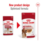 Royal Canin Medium Breed Adult Wet Dog Food is specially formulated to meet the nutritional needs of medium breed adult dogs (weighing 11–25 kg) from 12 months to 10 years old. Each pouch delivers complete and balanced nutrition to help maintain overall health and vitality during adulthood.