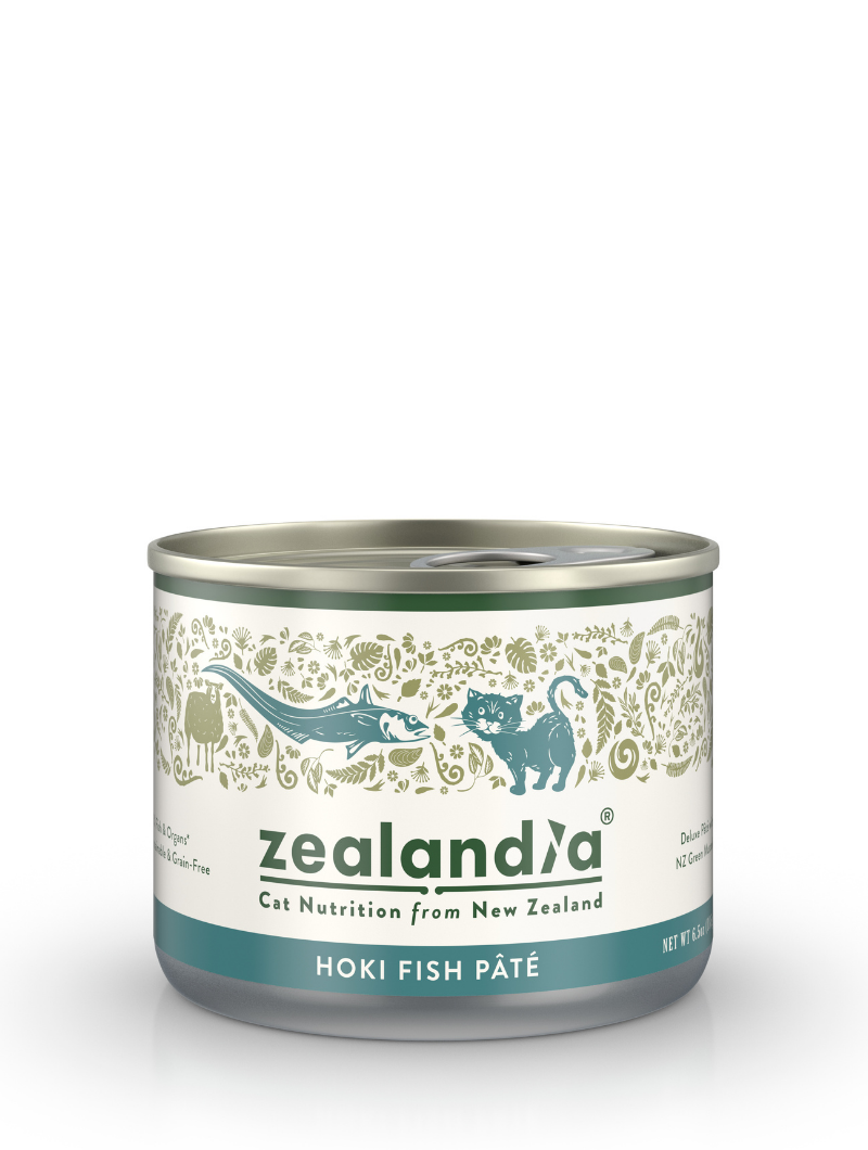 Zealandia’s Hoki Fish Pâté is a premium, grain-free wet food crafted from sustainably sourced New Zealand Hoki fish. This formula provides high-quality protein and essential nutrients to support your cat’s overall health. Enriched with lamb organs and New Zealand green-lipped mussels, it offers additional benefits for joint support and overall well-being.