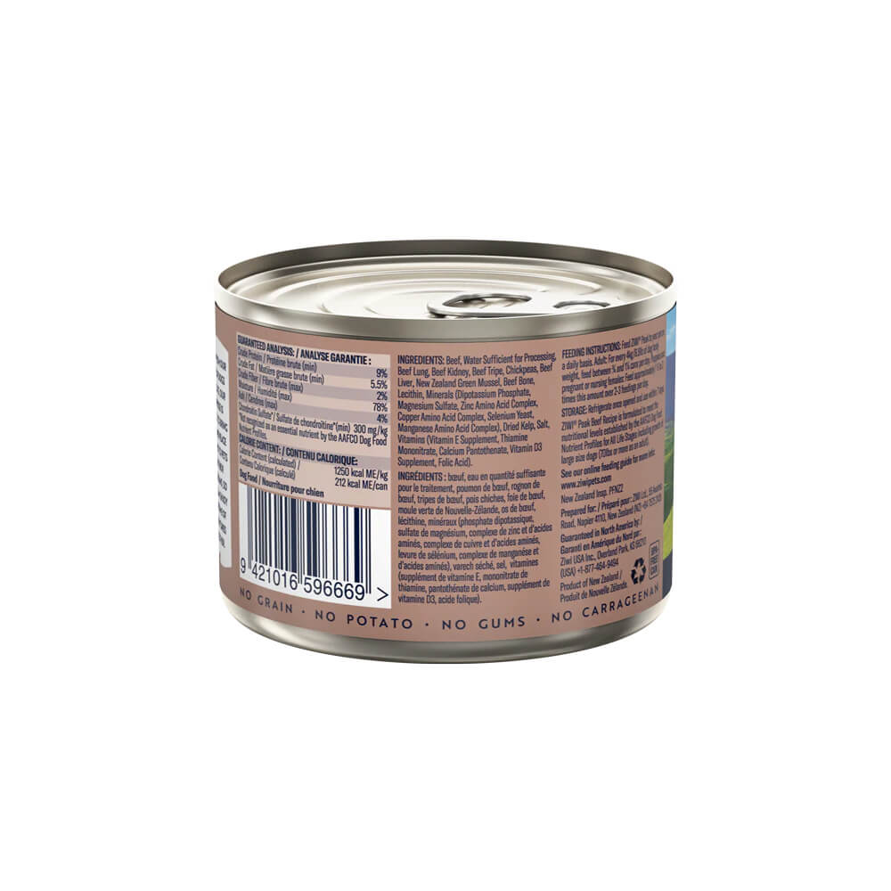 Ziwi Peak Beef Recipe Canned Dog Food in a smaller 170g size is perfect for smaller breeds or sampling. Made with 91% beef, nutrient-rich organs, and New Zealand green mussels, it delivers complete nutrition free from grains, potatoes, gums, or carrageenan.